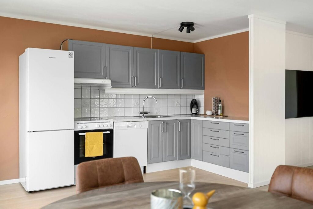 For a dated kitchen, consider DIY renovations such as painting cabinet doors or installing new floor tiles. You can also redesign the layout by adding a small kitchen island or a dining table that doubles as a prep area, making the room more functional and visually appealing.